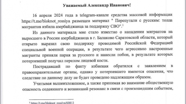 Председатель партии "РОДИНА", депутат Госдумы Алексей Журавлев отправил депутатский запрос главе Следственного комитета Александру Бастрыкину, в котором просит его взять под личный контроль разбирательство по преступлению, совершенному в городе Балаково Саратовской области.