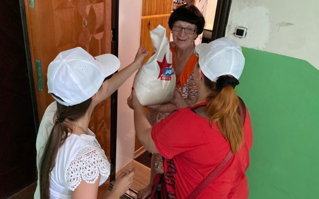 Большой вклад в комплектацию продуктовых наборов внес генеральный директор Гремяченского завода по утилизации отходов Геннадий Долбня, который также лично принял участие во вручении.